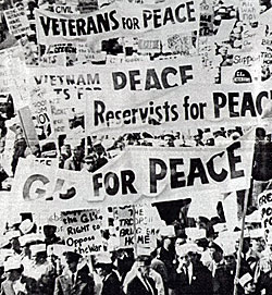 Through this unity, those left helpless to the power of the war overseas were able to congregate to protest this war that was taking their families from them. This first collective identity not only expressed the shared grief and suffering of those left behind, it also expressed the shared belief that America had no place in this war. Women wanted the world to know how angry they were and they took to protest to display their hostility toward war. They held vigils in front of the Pentagon, and beat on the doors of the Pentagon to show their disdain toward Defense Secretary McNamara and “his” war (DeBenedetti 1990: 172).